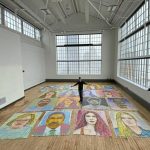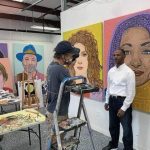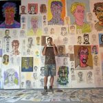 Pittsburgh artist Tom Mosser poses on March 28 with some of the portraits from his upcoming exhibition "Really Big Faces" on June 18 at the Energy Innovation Center in Pittsburgh’s Hill District.