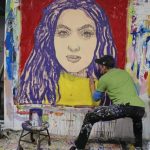 Pittsburgh artist Tom Mosser works on the portrait of Pennsylvania second lady Gisele Barreto Fetterman (wife of Lt. Gov. John Fetterman) in Mosser’s Etna studio.