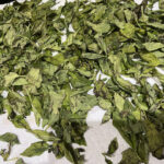Rinse, remove from stems and set out in a single layer on clean towels to dry. Because the goal here is to dehydrate the leaves rather than allow only excess moisture to evaporate from around and between them, the process will take considerably longer. Toss leaves daily. When they become crunchy, add them to clean jars or other sealable containers and store them as you would dry herbs from the store.