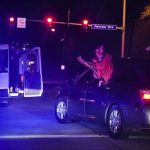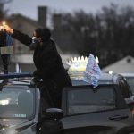 People hang out car windows and wave along Browns Hill Road in Squirrel Hill during Chabad of Pittsburgh’s annual Grand Menorah Parade on Tuesday, Dec. 15, 2020. The event was scaled back this year due to covid-19.