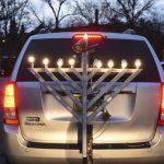 A menorah is seen on the back of vehicle at the start of Chabad of Pittsburgh’s annual Grand Menorah Parade at Rodef Shalom in Shadyside on Tuesday, Dec. 15, 2020. The event was scaled back this year due to covid-19.