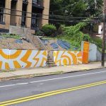 The mural features Holbrook’s “signature abstract style,” which consists of swirls, dots and geometric shapes and patterns — all of which are outlined in vibrant orange, the official color of gun violence awareness. In bold font, the mural bears the words “Stop gun violence.”