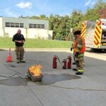 Participants can try on safety gear, including a mask and self-contained breathing apparatus. Also, there will be a live fire extinguisher experience and a forceable door entry demonstration.