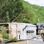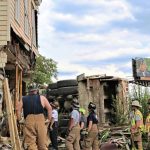 The truck was traveling down Kittanning Street shortly before 4 p.m. on Tuesday and crossed the intersection onto Spang Way before hitting the last house along the short road and flipping onto its side.