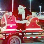 As their performance came to an end, a fire truck began flashing its lights and honking its horn at the audience. A line of first responder vehicles made a slow trek up the road toward the community center. A closer look at the parade revealed Rudolph standing atop the fire truck followed by an ambulance with Santa’s sleigh attached to the back. Santa received cheers from the audience as he made his way into the building.
