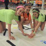 Hampton students (left to right) Alyssa Nyilas, Ashley Berg and Gracie Nelson decorate a Talbot Thon banner on March 29, 2019.