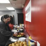 The lunchroom at Knichel Logistics had trays of fruit, pastries, burritos and sandwiches from Bartram House Bakery & Café in Pine. The event was held in conjunction with Dress for Success Pittsburgh, a non-profit that helps women entering and returning to the workforce.