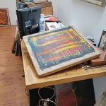 Two years ago, he got into making smaller pieces. Greco paints mini-art on 4-by-6-by-1-inch reclaimed wood pieces. He doesn’t use any brushes. His finger, fork, comb, steel wool or a knife are his typical painting instruments.