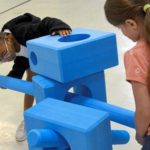 At that, the students darted and began connecting, building, swinging and kicking the big, blue foamy blocks, also known as the Big Blue Blocks Set by Imagination Playground.