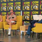Actor Thomas Lennon, dressed as his famous character Lt. Jim Dangle from “Reno 911,” talks Friday about various projects during a Q&A session at Steel City Con, while fan Mardie Baldo of Ross, left, and emcee Mike Devine look on.