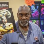 Artist Shad Nowicki, 50, of Ellicottville, N.Y., showcases his painting and prints Friday at Steel City Con at the Monroeville Convention Center.