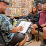 Griffin and Hailey sit Friday while “death of Color” artist Derrick Smith draws their comic during the Steel City Con expo at the Monroeville Convention Center.
