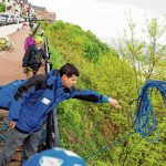Experienced mountain climbers and other volunteers cleaned up litter Saturday from the slopes of Pittsburgh’s Mount Washington. They rappelled down the cliff from along Grandview Avenue.