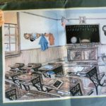 “The room would’ve been separated by a wall with two rows of desks and a space for hanging coats,” Patty said. “Students sat three to a bench, and the benches were about 6 feet wide. The room could accommodate about 24 students.”