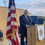 Franklin Regional Superintendent Gennaro Piraino addresses the Class of 2020 at a phased commencement ceremony, held July 24, 2020, at Panther Stadium in Murrysville. Courtesy of Tina Gillen