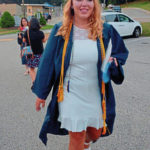 Franklin Regional graduate Clairissa McCormick poses for a photo following phased commencement ceremonies at Franklin Regional Senior High School’s Panther Stadium on Friday, July 24.