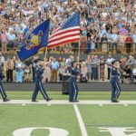 Members of North Allegheny’s Air Force Junior ROTC carry the Stars and Stripes and the Pennsylvania flag during the high school graduation ceremony at Newman Stadium on June 7, 2019.