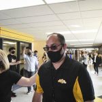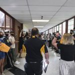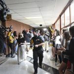 Nearly 800 students congratulated Heiry with a surprise hybrid ceremony held virtually and in the school’s auditorium on Tuesday, May 4. Members of the marching band’s drum line were on hand for the event and the room was decorated with posters made by student government organizations.