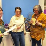 “The intriguing thing about coming up with sound effects for ‘radio’ is that it makes you more aware of sounds in general,” she said. Seeing an object helps interpret the sound you’re hearing, but once you can’t see what’s making the noise, it’s easier to fool your ear. Crumpling plastic wrap sounds like a crackling fire, and shaking a big piece of poster board sounds like thunder.”