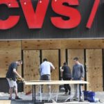 A boarded up CVS store is seen on Forbes Avenue in Downtown Pittsburgh on Sunday a day after violence erupted during the protests over the death of George Floyd. Police and protest organizers say those who burned vehicles and destroyed property likely were from out of the area.