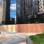 The PNC building on Liberty Avenue in Downtown Pittsburgh is surrounded by plywood walls on Sunday, a day after protests over the death of George Floyd turned violent.