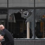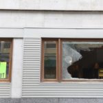 A busted window in seen on a building on Wood Street in Downtown Pittsburgh on Sunday a day after violence erupted during the protests over the death of George Floyd. Police and protest organizers say those who burned vehicles and destroyed property likely were from out of the area.