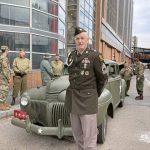 Donning a throwback uniform, retired Master Sgt. Danial Sham rode down Grant Street in an authentic military Jeep.