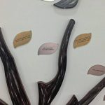Mounted prominently on one of the walls is a Giving Tree, featuring leaf-shaped medallions of assorted colors bearing various inscriptions, such as a dedication to the “loving memory of Mike & Mary Maloney.”