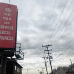 A Penneco billboard on South Main Street in Southwest Greensburg tells drivers to “Keep Calm and Support Local Businesses.”