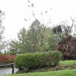 The base of a tree that toppled along Cole Avenue in Hampton is nearly as tall as the lines coming from a nearby utility pole. Numerous trees fell onto power lines and homes and sent debris flying through the neighborhood when a tornado struck on Thurday. Among the hardest-hit areas was the community surrounding St. Ursula Church.