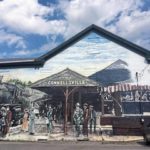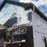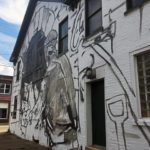 Raymer was commissioned by the Fayette County Cultural Trust to create a 4,000-square-foot mural on three sides of the building. One completed wall shows the Connellsville train station. A second, unfinished wall will show detail of a coal miner hard at work.