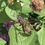 A wasp rests on a plant in the Greensburg Garden Center’s Lefevre Butterfly Garden.