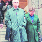 Retired Brentwood, Pa., police officer Milton Mullholland leaves the Allegheny County Courthouse in Pittsburgh with his wife after a mistrial was called on Saturday, Dec. 13, 1997, because of a deadlocked jury in his and Baldwin, Pa. police officer Michael Albert’s second trial on charges related to the death of motorist Jonny Gammage, Jr. who died in a fight after a traffic stop in October 1995.