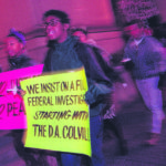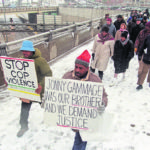Jonny Gammage supporters march down Centre Avenue towards the Allegheny Courthouse after gathering at Freedom Corner on November 11, 1995. Once just a place for demonstrations, speeches, and the start of a march council members are trying to decide who should be responsible for maintenance of the Freedom Corner monument, especially after recent vandalism.