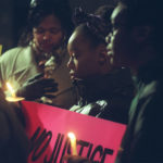Ogechi Chieke, 16, of Homewood, holds a candle during the Jonny Gammage rally at the City County Building.