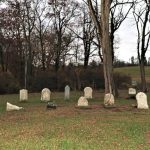 In the 1930s, Robert Czlapinski, who was of the same family who owned the Bakerstown Hotel in the early 1900s, cleaned up the grounds and assembled what stones he could dig up. They had fallen and were buried for many years but he was able to arrange them in rows and had marked them with flags afterward.