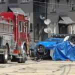 A witness told TribLive news partner WTAE that a black Jeep was speeding on West Liberty Avenue when its driver tried to make a left turn, hitting a second vehicle and then rolling onto a truck.