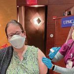 Dr. Kacie Kidd, 33, (left) an adolescent medicine fellow at UPMC Children’s Hospital of Pittsburgh in Lawrenceville received a second covid-19 vaccine. Pregnant women such as her can receive vaccines at a clinic inside UPMC Magee Womens Hospital in Oakland on March 31.
