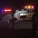 Saltsburg Road was closed late Friday night near Pfeffer Road in Washington Township after two people were injured in a crash that left one car on its roof.