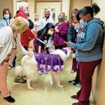 AVH’s team of therapy dogs and their handlers regularly volunteer their time in the hospital by visiting patients in their rooms, in common areas and in the mental health units, she said. She said that staff loves interacting with the dogs when they have the time.