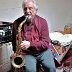 “What’s my secret? Those 11 steps outside this door and this,” he says with a tap to the neck of the vintage Selmer saxophone at his side.