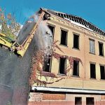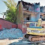 Crews from Wayne Grguric Xcavate spent much of Thursday preparing for the demolition, which closed a portion of Fourth Avenue to traffic. Work began in earnest Friday, with crews pulling down the brick walls and hauling away debris.