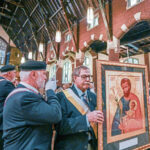 Knights of Columbus member Tim Shields carries an icon of St. Joseph to the altar at Saint Joseph Parish in New Kensington during a prayer service Monday.