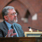 Michael Aquilina speaks about the life and purpose of St. Joseph during a prayer service at St. Joseph Parish in New Kensington on Monday.