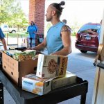 The organization relies on volunteers to sort and pack food and load it into vehicles.