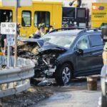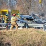 Crews work to clean up a two-car crash on Thursdayon Freeport Road at Oak Manor Drive in Harrison.
