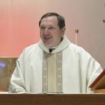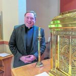 Greensburg Bishop-elect Larry Kulick, then a Monsignor, welcomes parishioners on June 1 to a morning Mass at St. James Roman Catholic Church in New Alexandria.