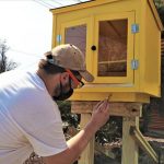 The box has a plexiglass door so patrons can see what’s inside without the need to rummage. It also is equipped with a solar powered light so the contents can be viewed at night.