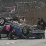 Motorists stop to assist driver of car that flipped on Route 28 near East Deer