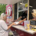 Mary Jane’s Kitchen co-owner Jennifer Lackey, left, serves up desserts to Plum residents John and Eileen Berezanich and their friend, Cheryl Kiser, at the Plum Monday Market at Plum Creek Park on Monday, June 5.